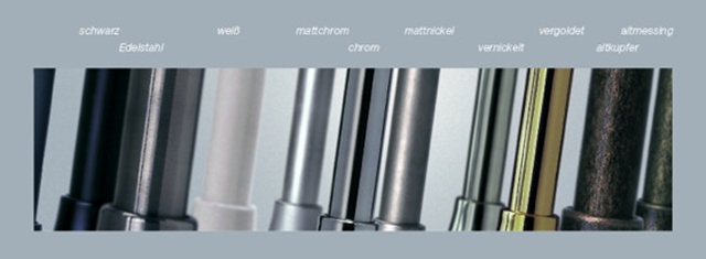 Bei der Wahl der Bolzen können wir auf ein großes Sortiment zurückgreifen. Neben verschiedenen Designs können Sie auch aus unterschiedlichsten Oberflächenveredlungen wie z.B. “verzinkt”, “verchromt”, “altkupfer” oder RAL-Farbtönen wählen.